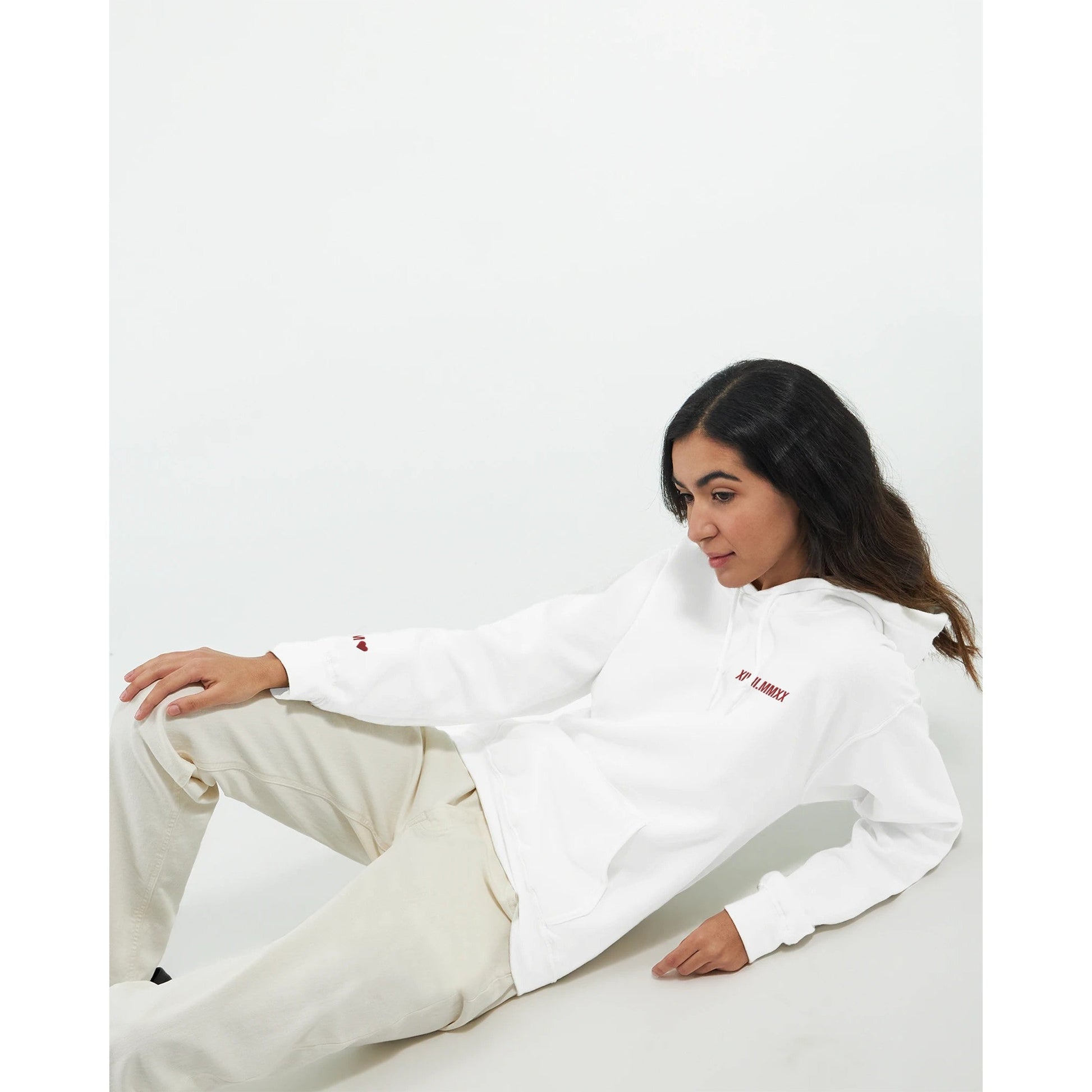 Felpa con cappuccio con data romana ricamata
